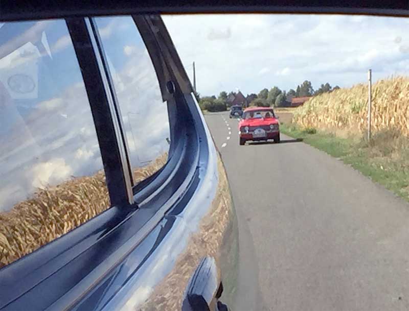 Zwischendurch wurde unsere Ausfahrt zur Wallfahrt, da an diesem Tage viele Fußgruppen zu einer Glaubensdemonstration unterwegs waren. Die Streckenführung führte uns an vielen landwirtschaftlichen Höfen nebst dazugehöriger Tierwelt vorbei. Manchmal befuhren wir Nebenstrecken, die der eine oder andere normalerweise niemals befahren hätte, denn sie entpuppten sich als Stoßdämpferteststrecken. Dabei wissen wir doch alle, dass unser geliebter Capri keine Stoßdämpfer nötig hat. Man merkte auf jedem Kilometer, dass unser Ralf die Gegend wie die Blattfedern seines gelben Capri kennt. Wir lernten auch die nordrhein-westfälischen Alpen kennen, die wir dort nicht vermutet hätten. Alpen, so heißt der Ort, in dem Annette und Ralf Geisler leben.