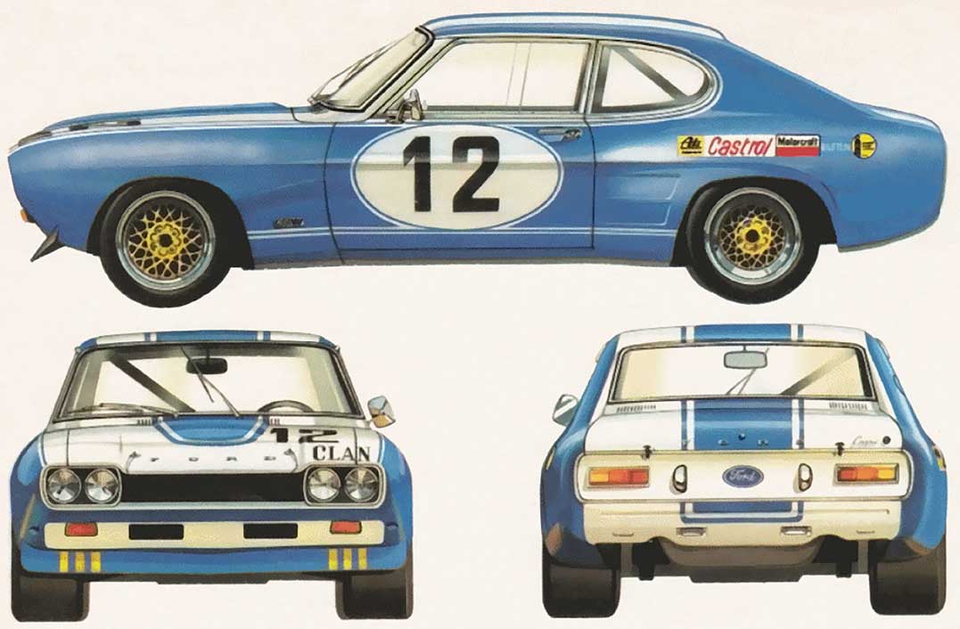 Ab Mitte der Saison 1971, beginnend mit dem 24-Stunden-Rennen in Spa Francorchamps, gab es ein neues Erscheinungsbild. Der zweite Werkscapri mit Mass/Birrell in blau-weißer Lackierung und unterem breiten weißen Streifen.