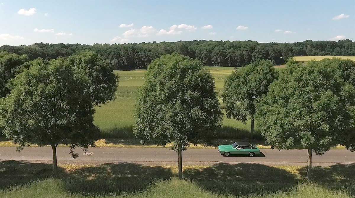 Außergewöhnliche Ansichten werden durch kamerabestückte Drohnen ermöglicht. Im Rahmen der WDR-Dokumentation „Das Experiment“ wurde der II-er bei einer Alleedurchfahrt aus der Vogelperspektive begleitet.
