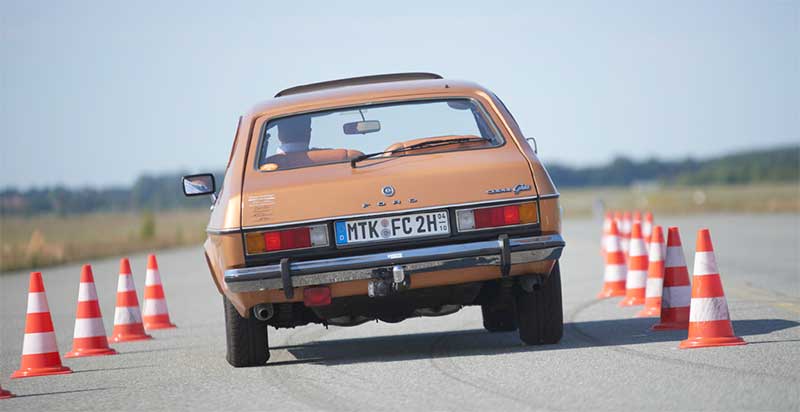 Am Samstag stand unter anderem mein Capri im Fokus der Tests. Manchmal konnte ich es nur mit geschlossenen Augen ertragen, wie hart der Wagen strapaziert wurde. Automatikauto am Anschlag, so kam mir das vor. Beschleunigung, Slalom, Elch-Ausweiche, Vollbremsung, Höchstgeschwindigkeit und noch vieles mehr.