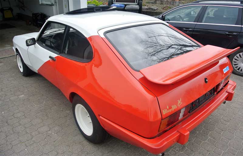 Eigentlich wollte ich den Capri in weiß/blau lackieren lassen. Klassisches RS-Design, halt. Nach Recherche und Einberufung des Familienrats kam es aber anders. Der Entschluss: originale Farbgebung. Heute wissen wir, dass die Entscheidung richtig war. Beinahe unauffällig, mit seinem sexy Hintern, den dezenten Streifen auf der Seite und dem dumpfen Grollen aus dem Auspuff dreht sich jeder nach dem Auto um.